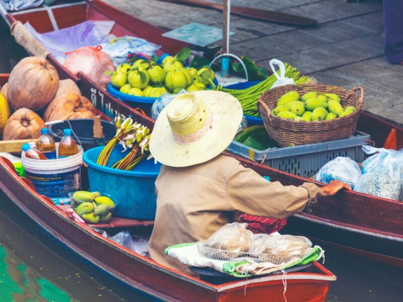 - Round-trip cu van,Paddleboat, degustări de local snack și fructe de sezon la Damnoen Saduak floating market, ghid, apă de băut, prânz, ICON Siam Tourist Privilege Card (30% discount la selected shops și acces la luxury tourist lounge)