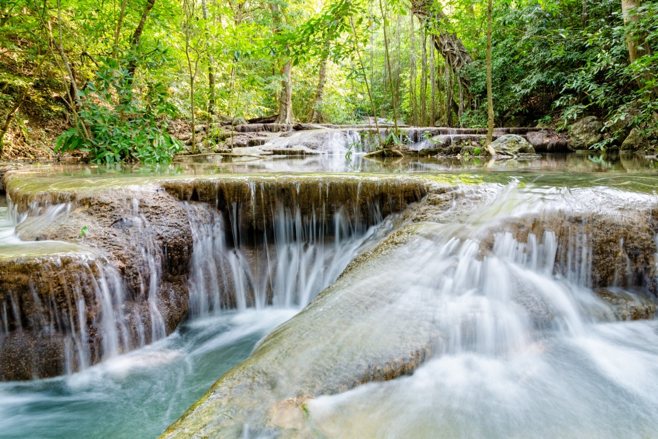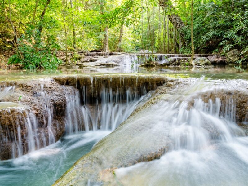 Opțional: Trekking prin pădurile Erawan National Park. Apoi ajungem la cele 7 cascade Erawan unde putem face chiar și scufundări.
